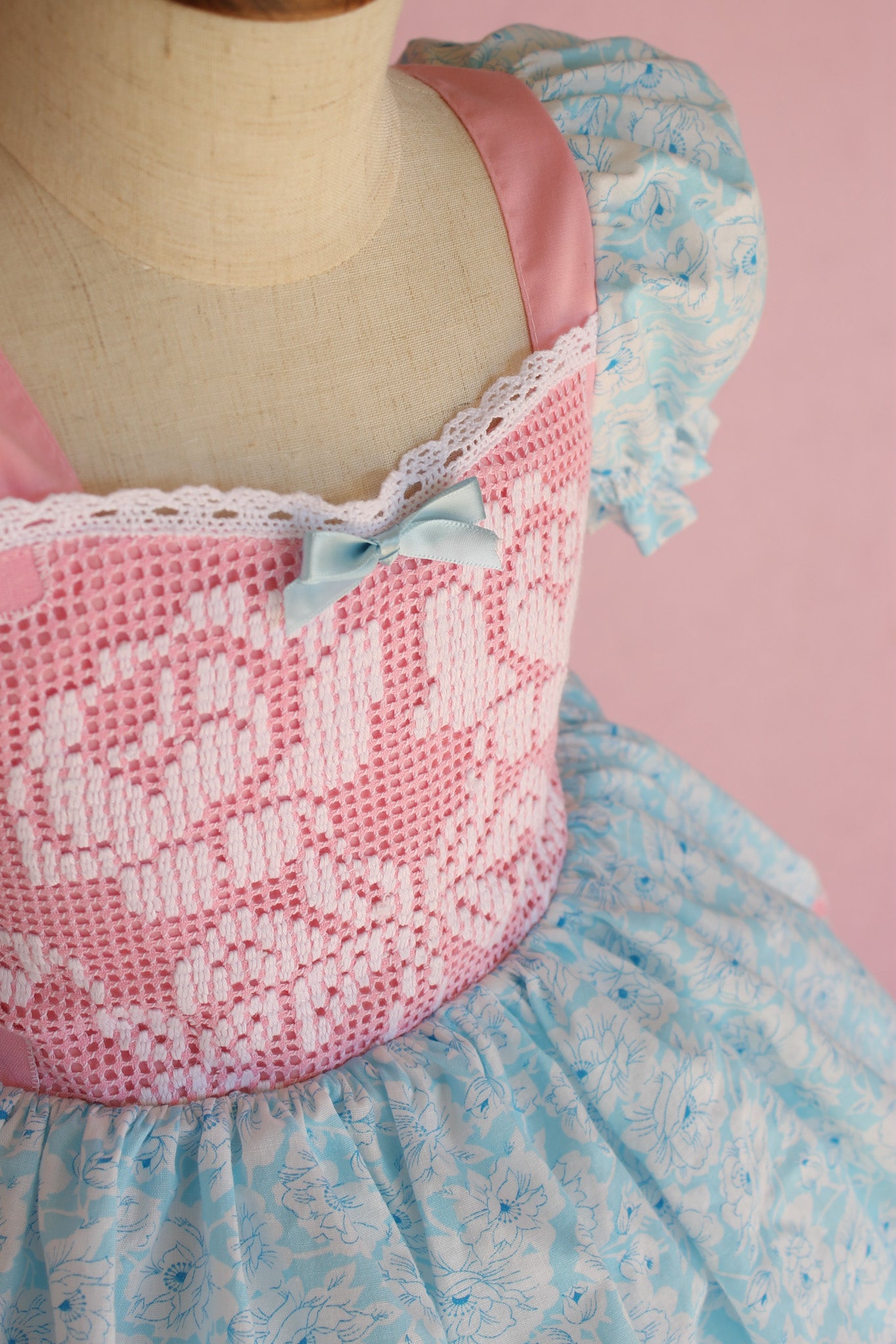 Step out in style this spring with our Vintage Icy Blue Floral Dress, featuring a pink vintage floral lacee details, embroidered bodice and a triple tier cupcake skirt. Perfect for any occasion, you'll feel elegant and feminine in this beautiful dress.