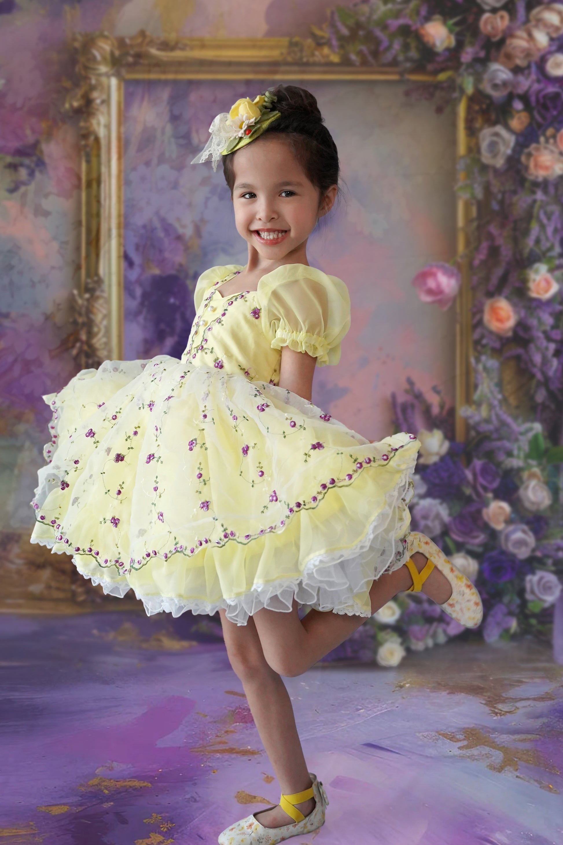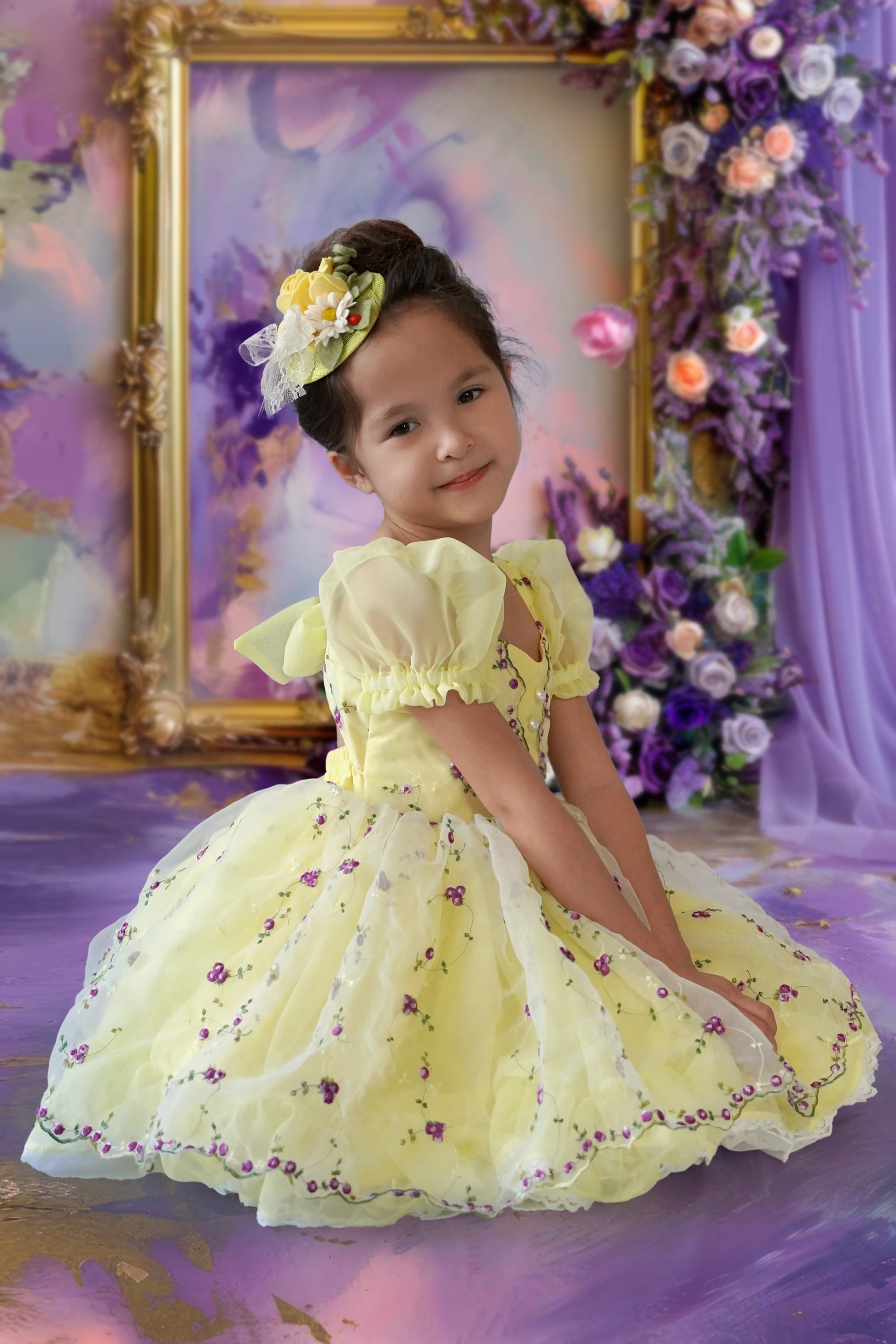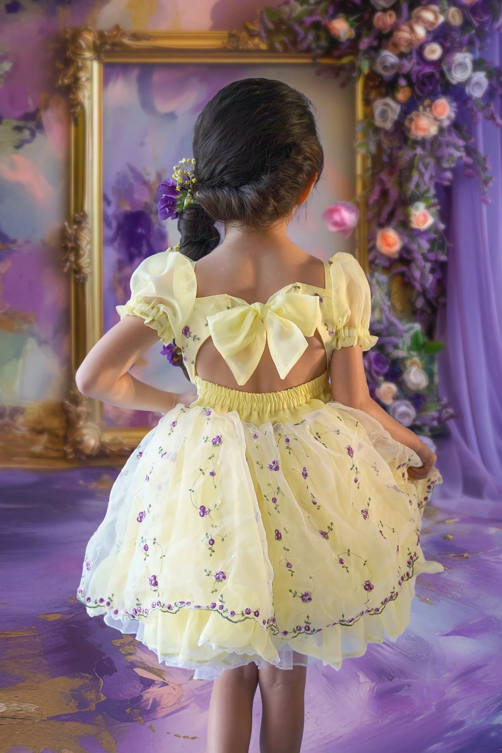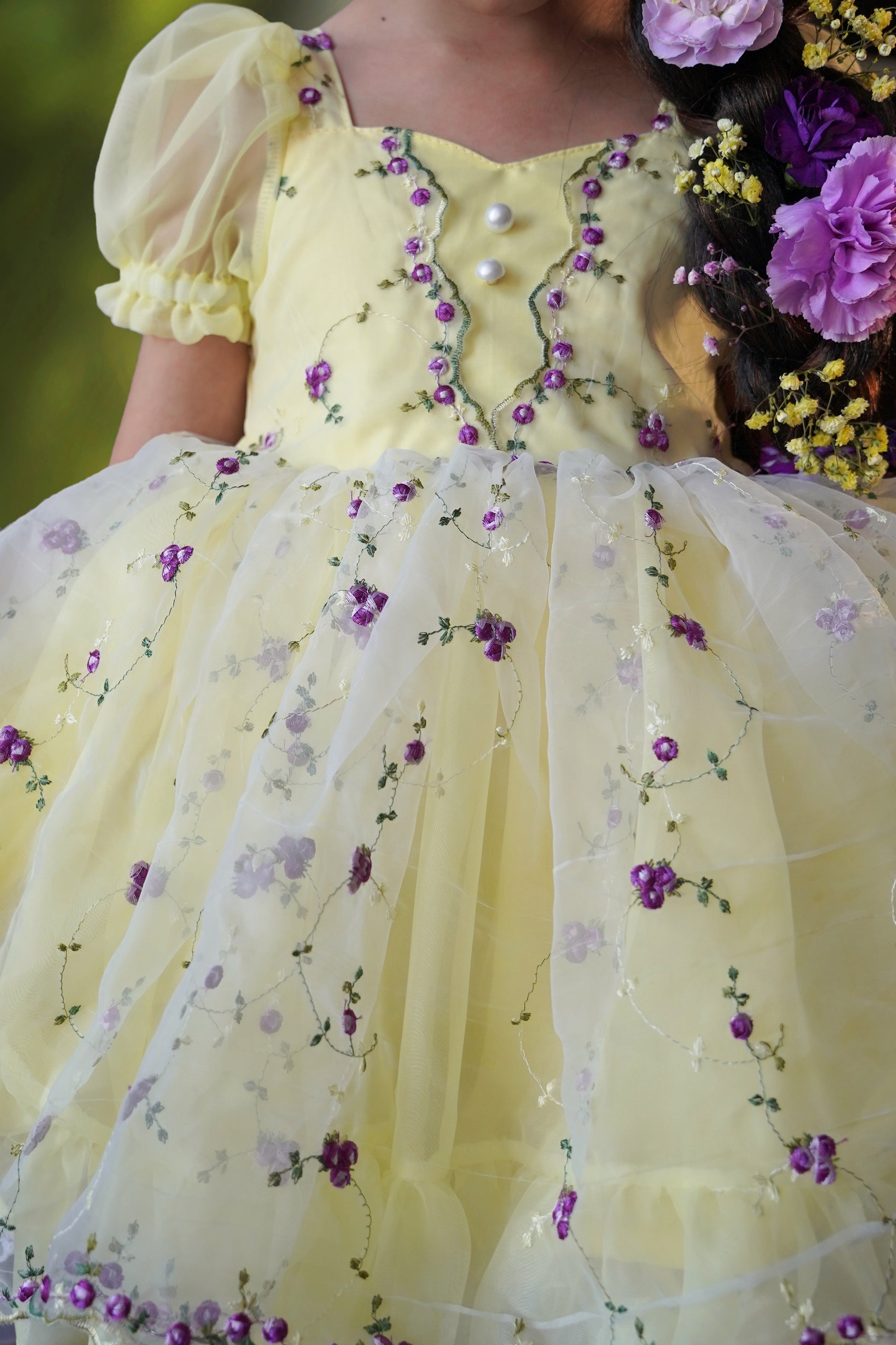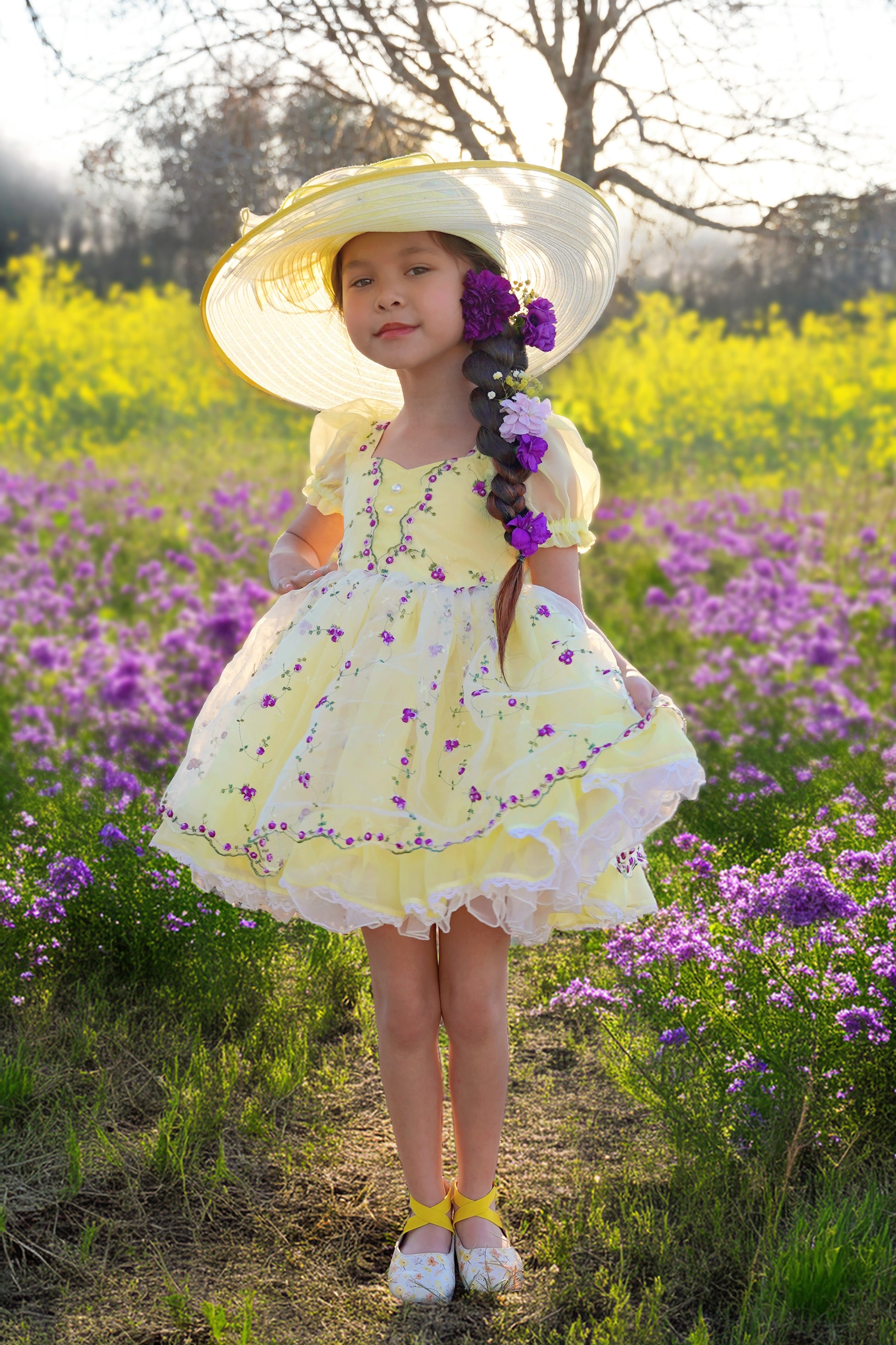 Experience the vibrant joy of spring in our Buttercup dress! Adorned with purple flowers, this yellow sunshine dress is both soft and airy, perfect for warm weather. Embrace the season and feel the energy of nature in this must-have dress.