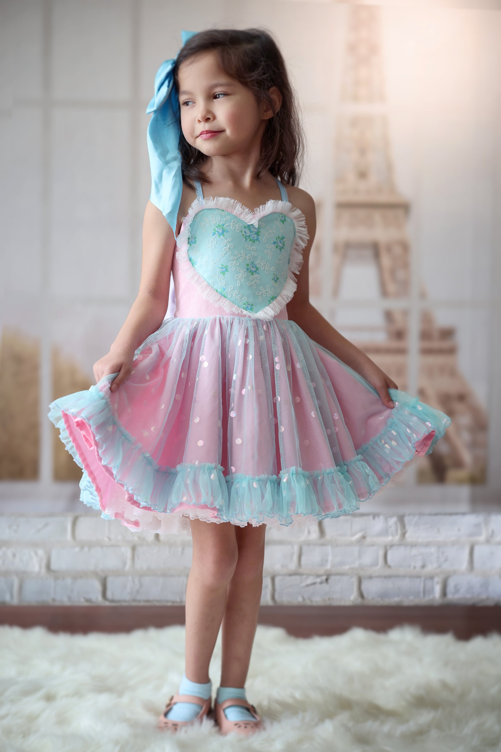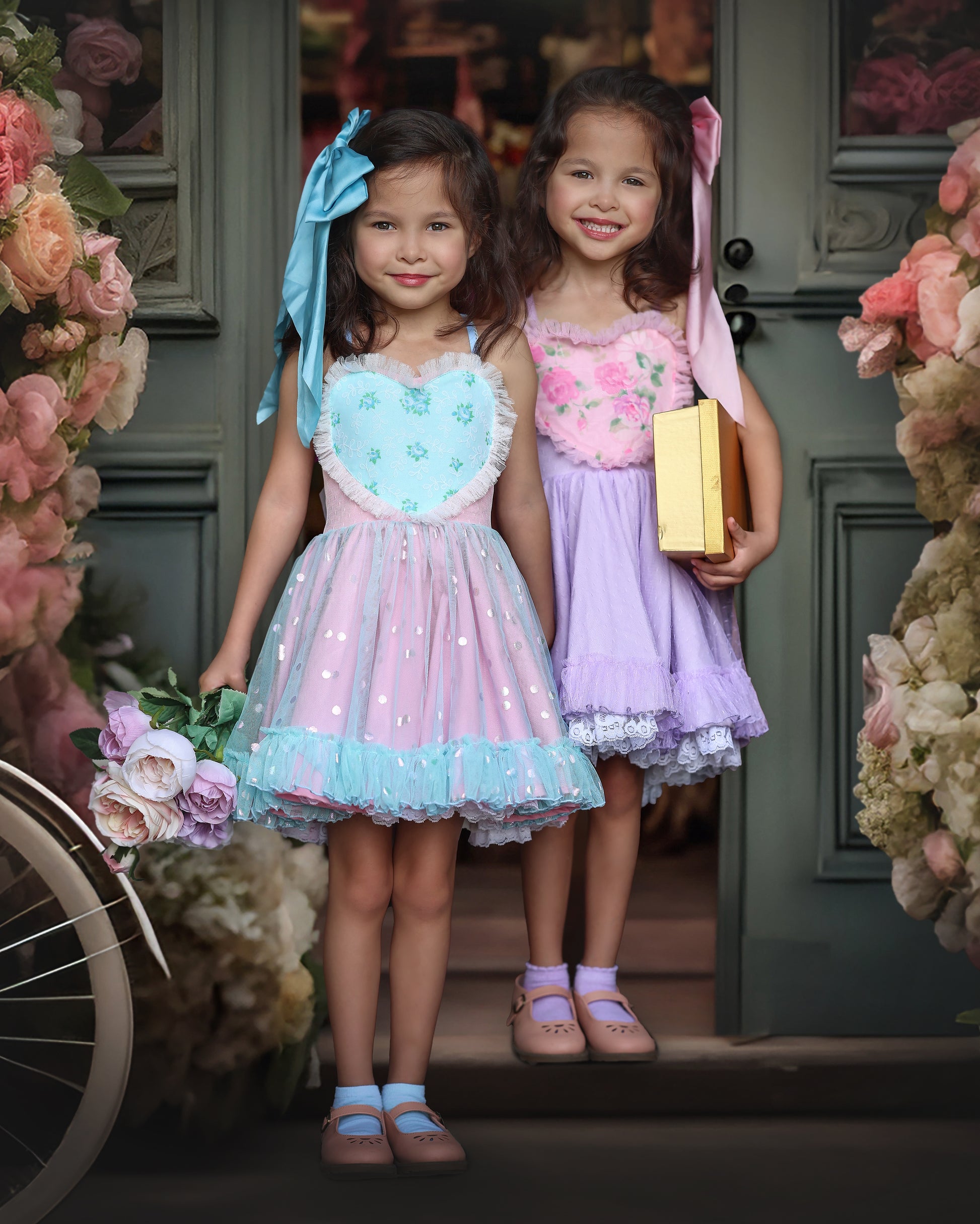 Have her ready for any adventure in this sweet rose dress, made from a carefully curated collection of vintage lace, paired with a Swiss dot, combining the best of the old with new!