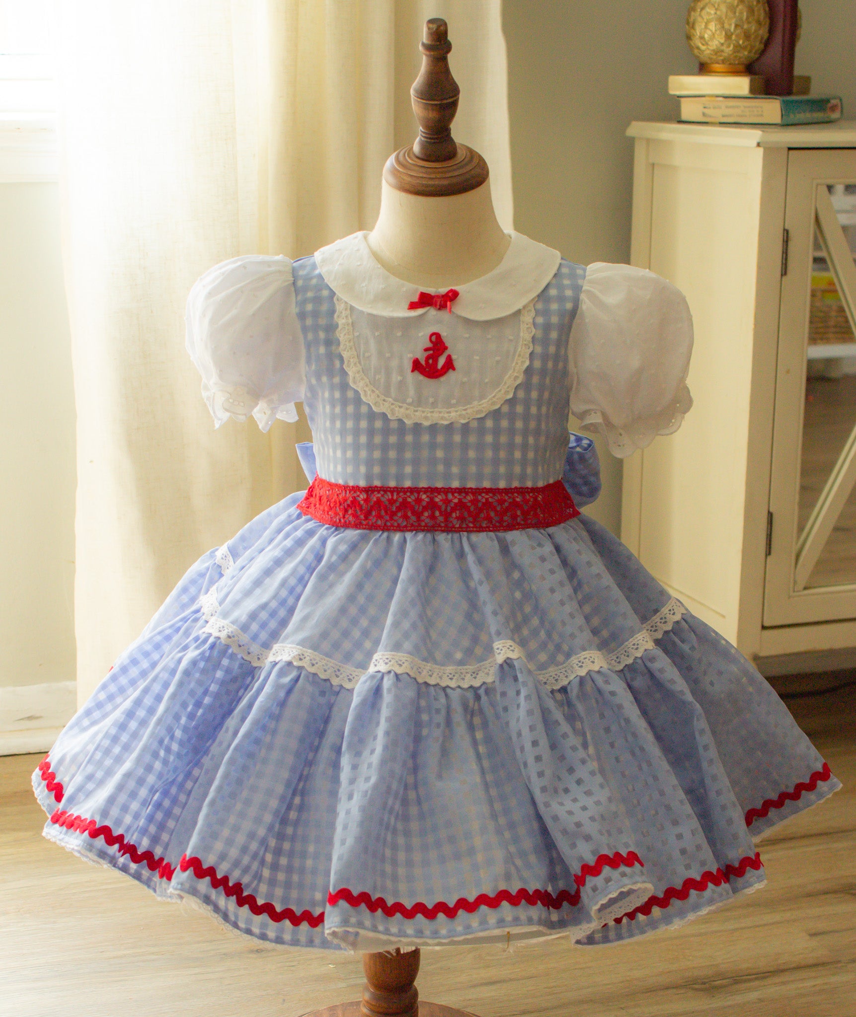 Sail away in style with Isla! This adorable size 4/5 dress features a peter pan collar and classic colors. Perfect for your little one's nautical adventures, this charming outfit will surely make a splash!