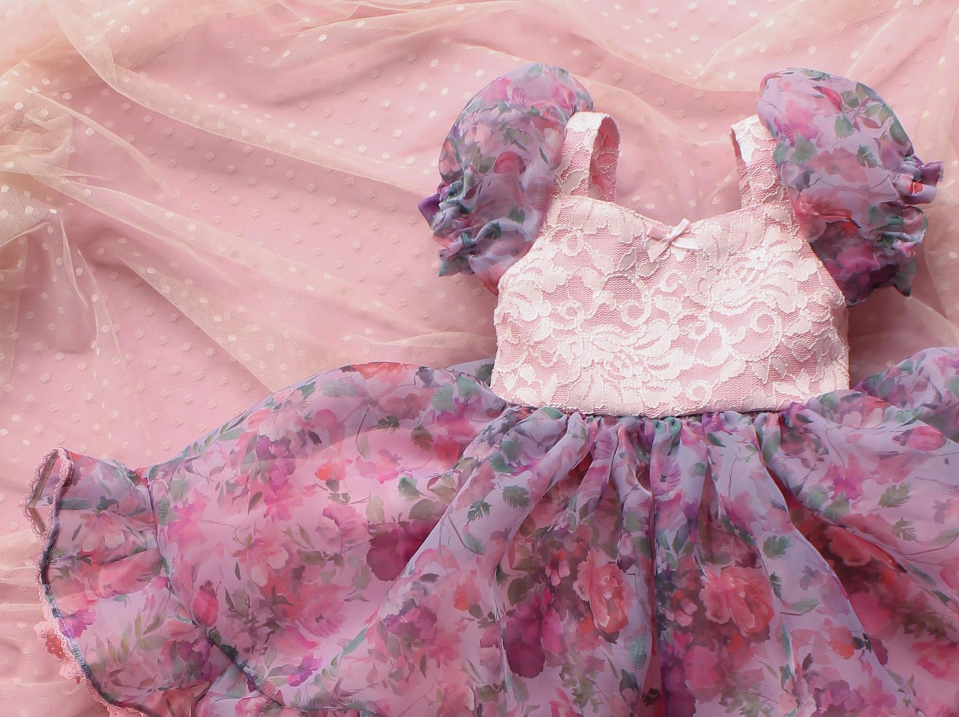 Indulge in the romantic beauty of Juliet, Our vintage materials are expertly crafted to showcase a striking floral print. The lace bodice and puff sleeves add a touch of whimsy and elegance. Experience the magic of Valentine in this one-of-a-kind statement piece, unique dress for your one-of-a-kind girl!