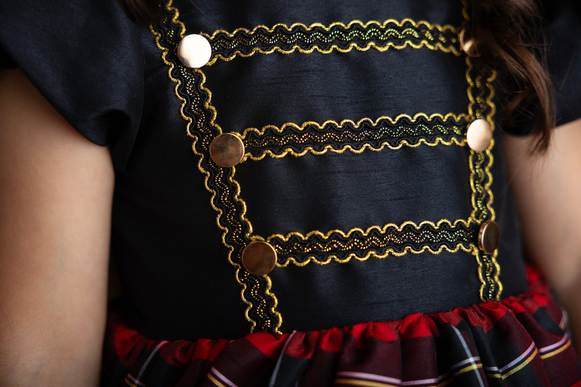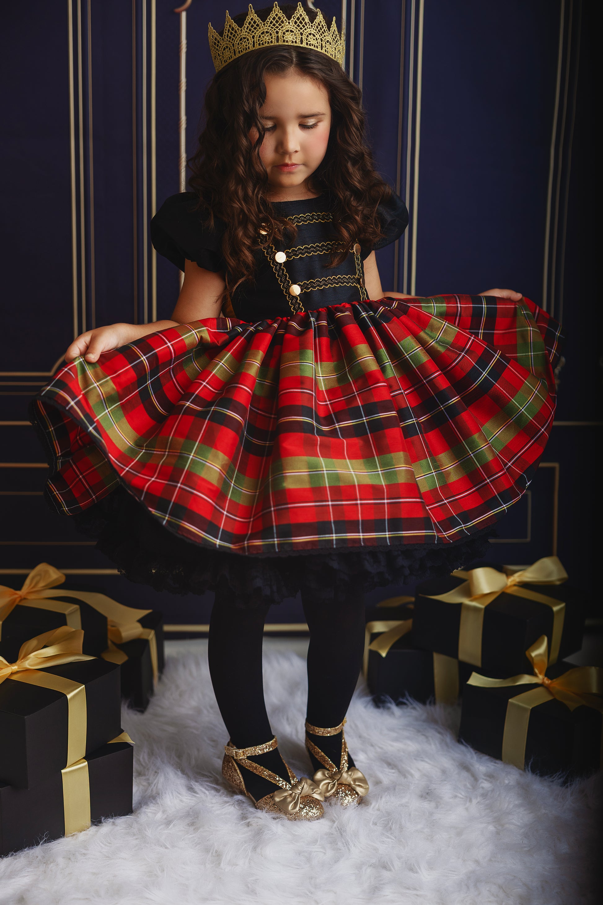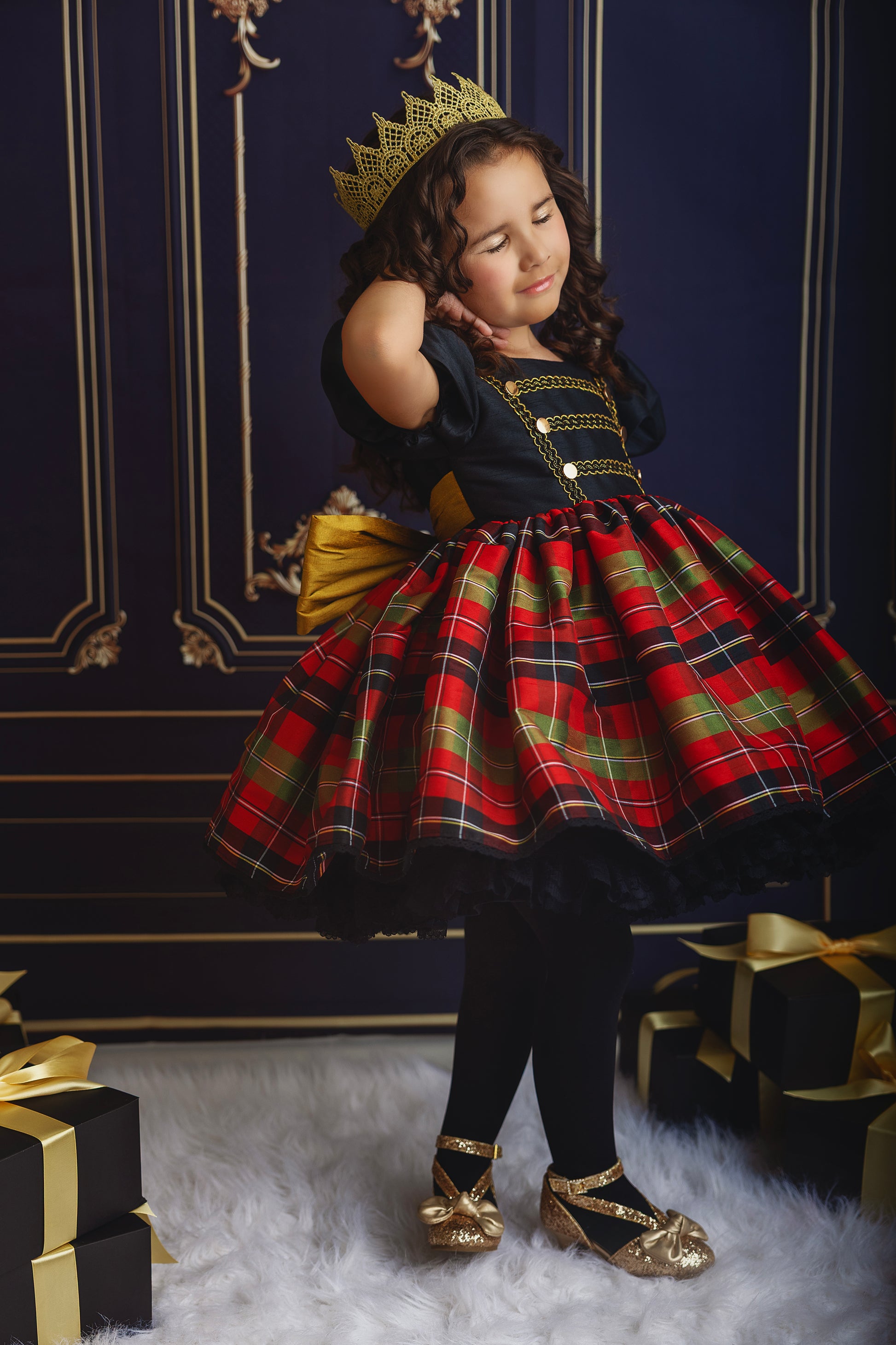 Bring the magic of the Nutcracker to your closet with metallic shimmer of this nutcracker dress! This dress is perfect for bringing out your inner holiday spirit. Prepare to be enchanted! With all the twirl for those special pictures.