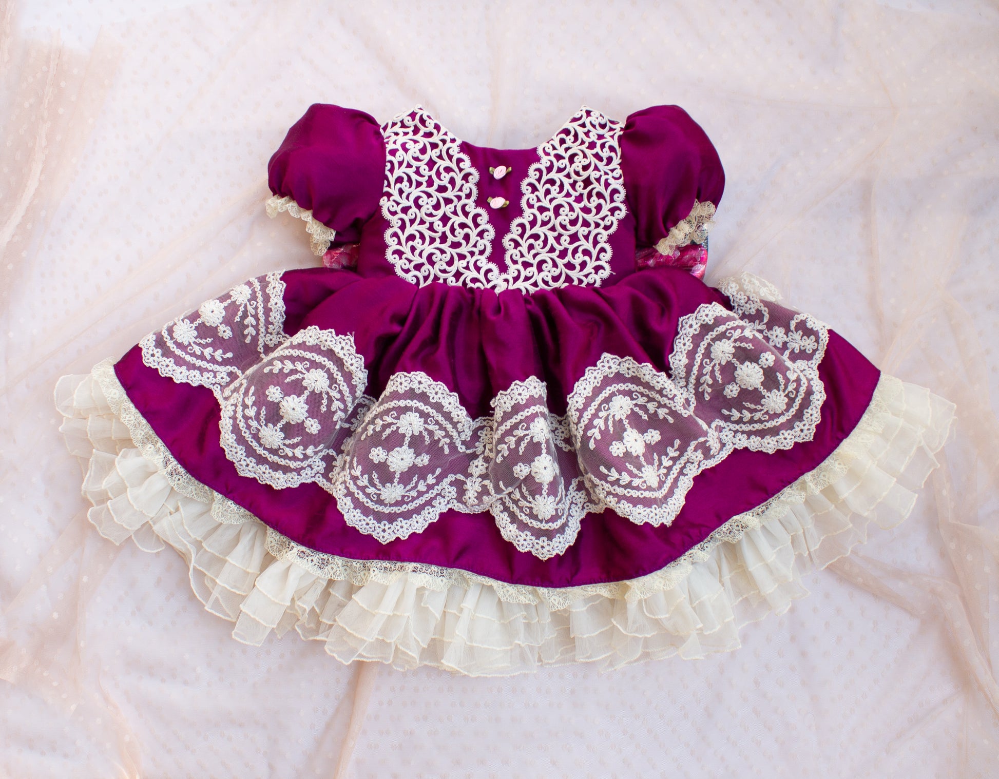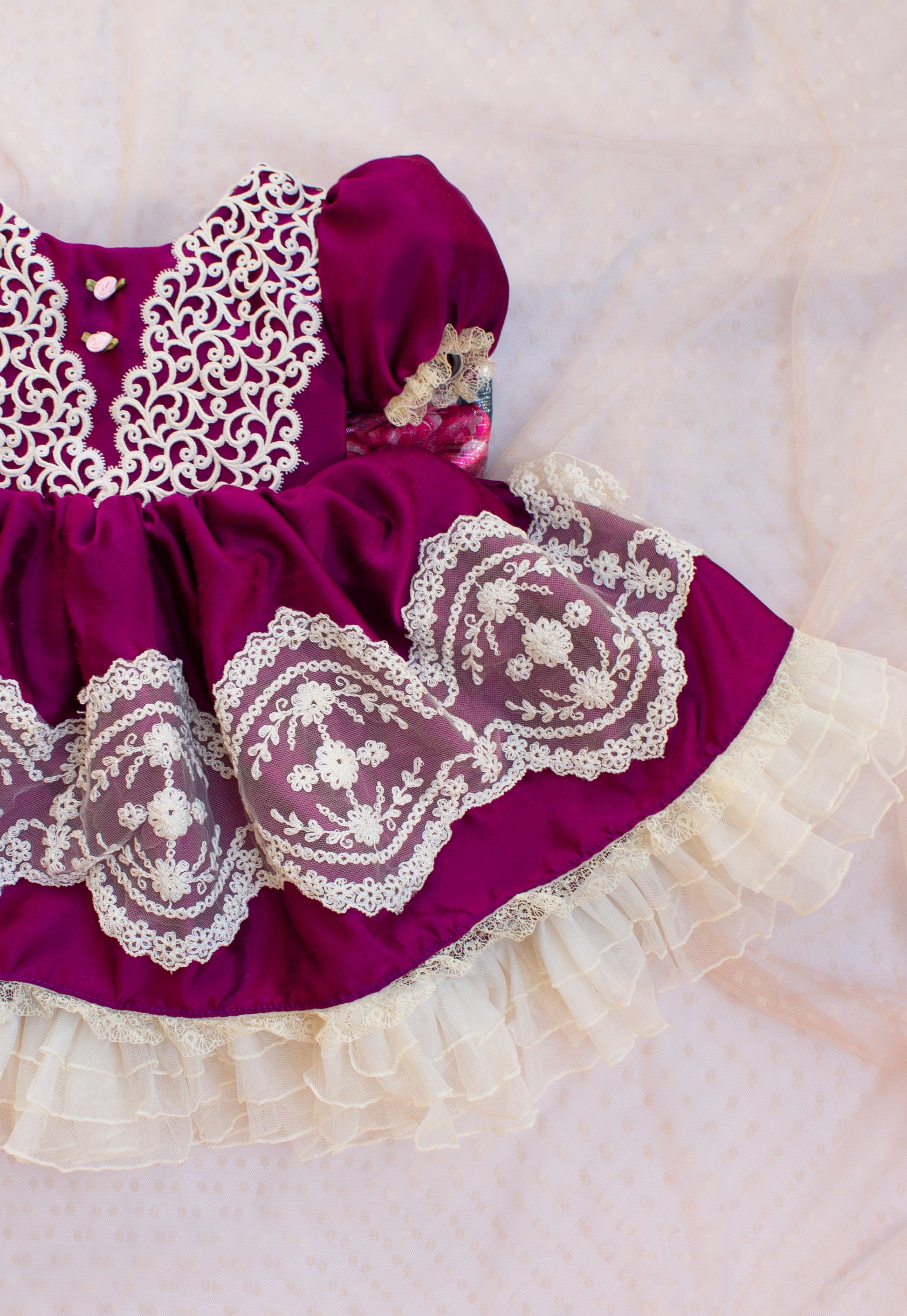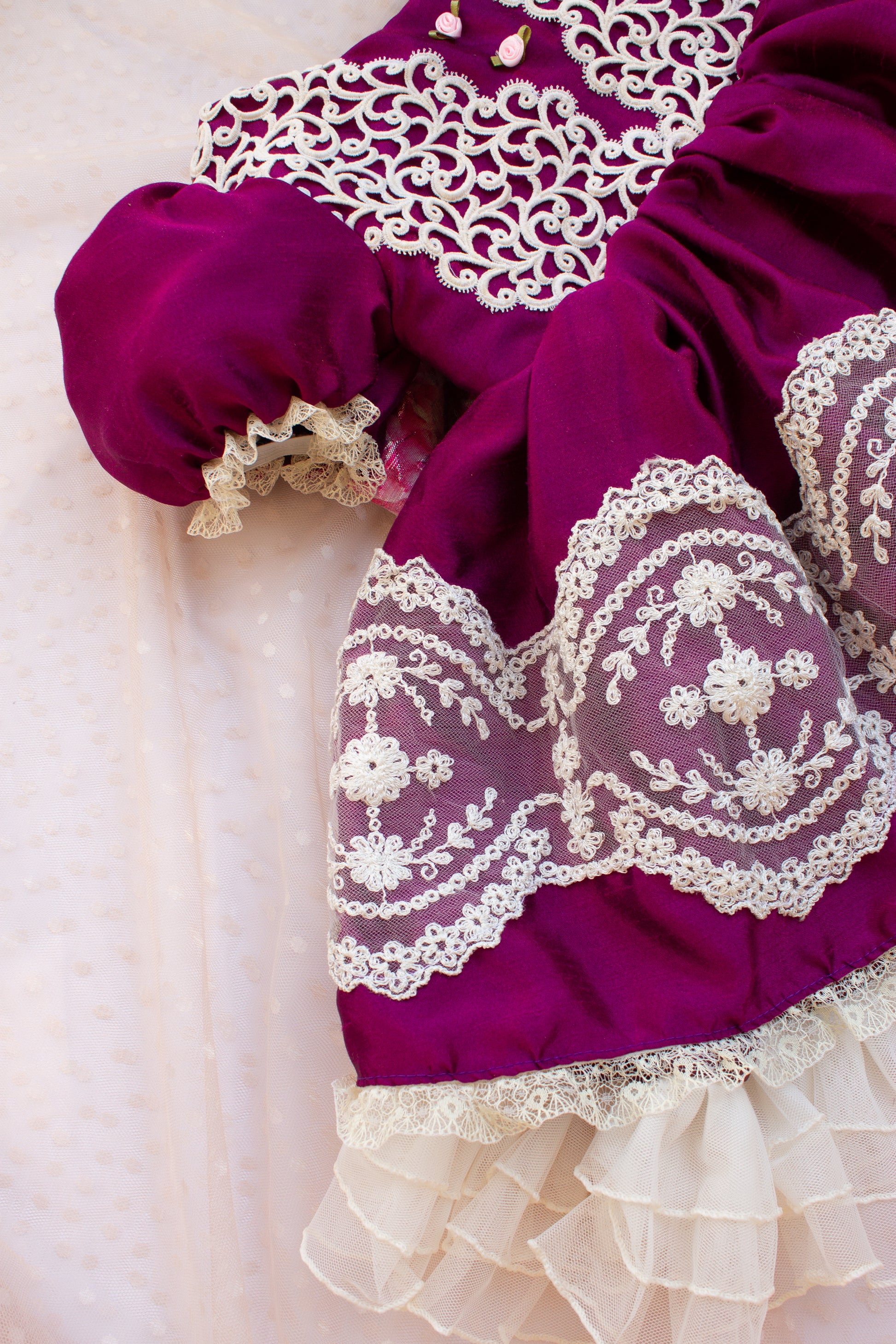 Wide lace hemline, with sweet puff sleeves and all the trimmings.