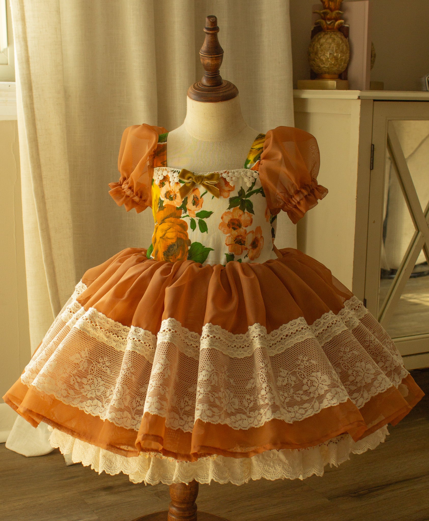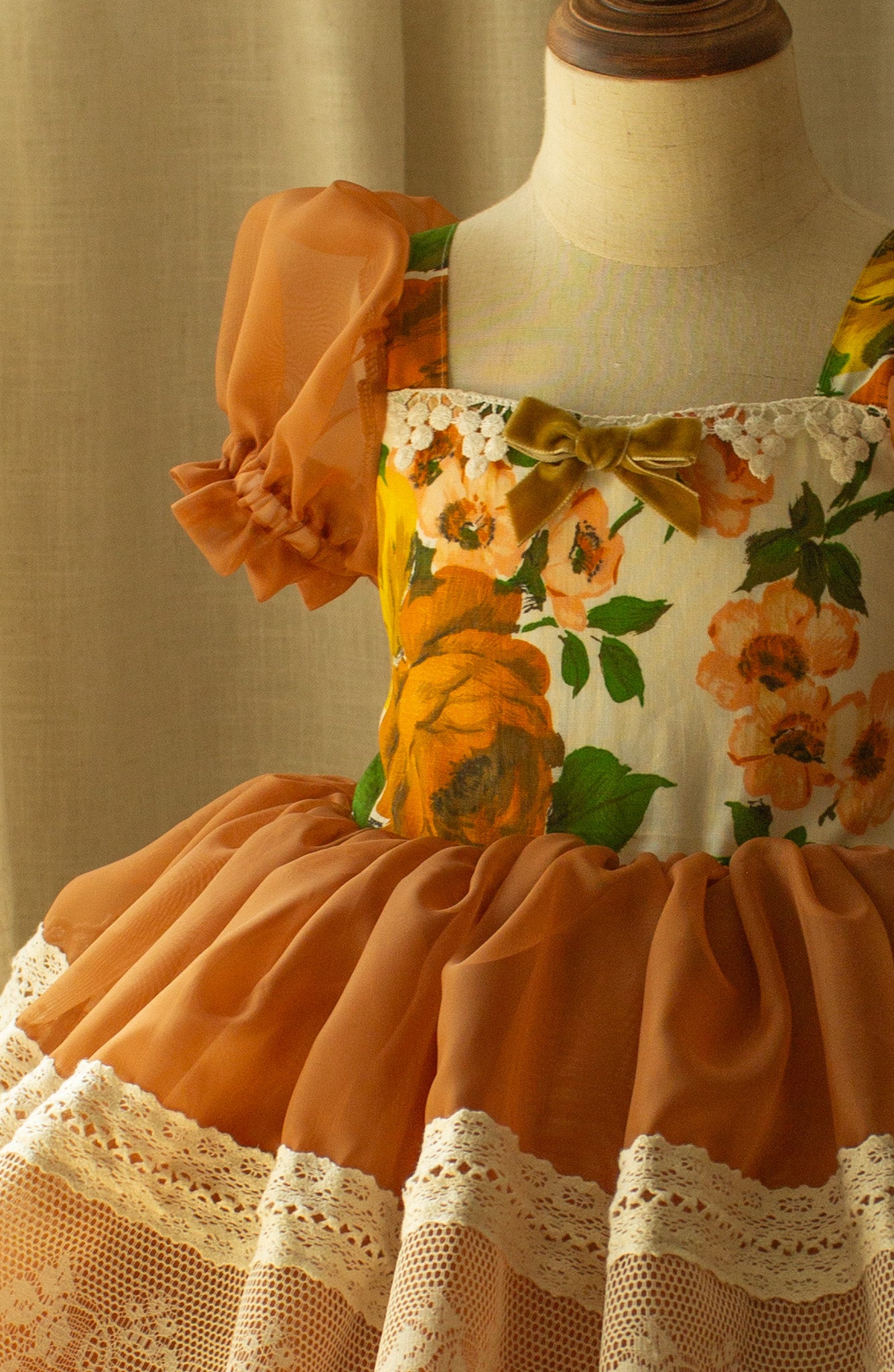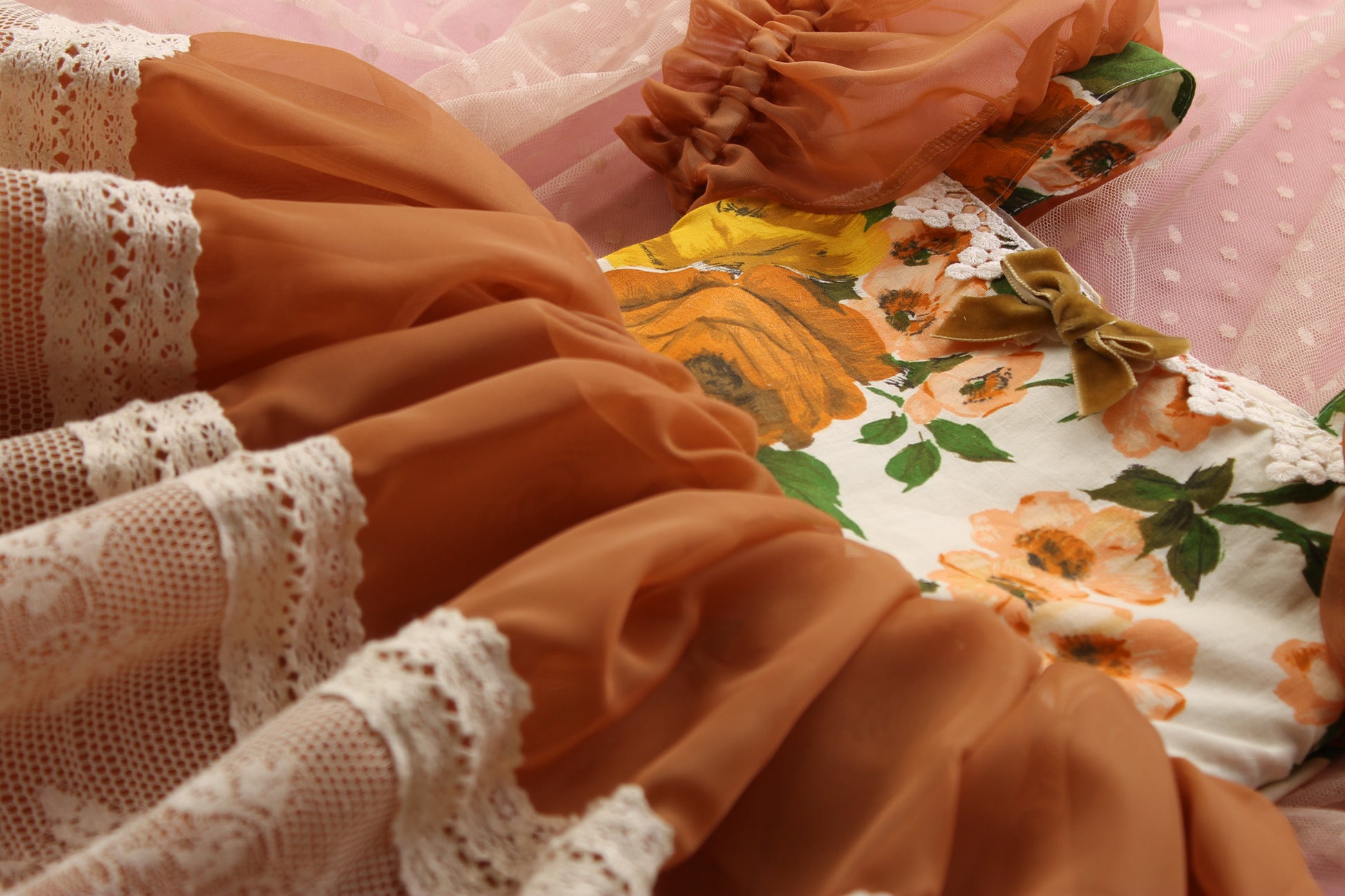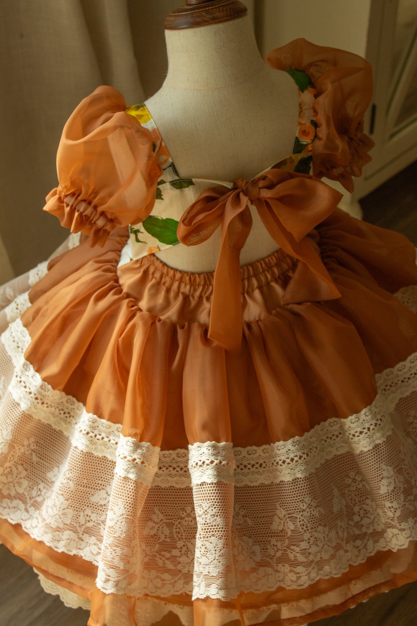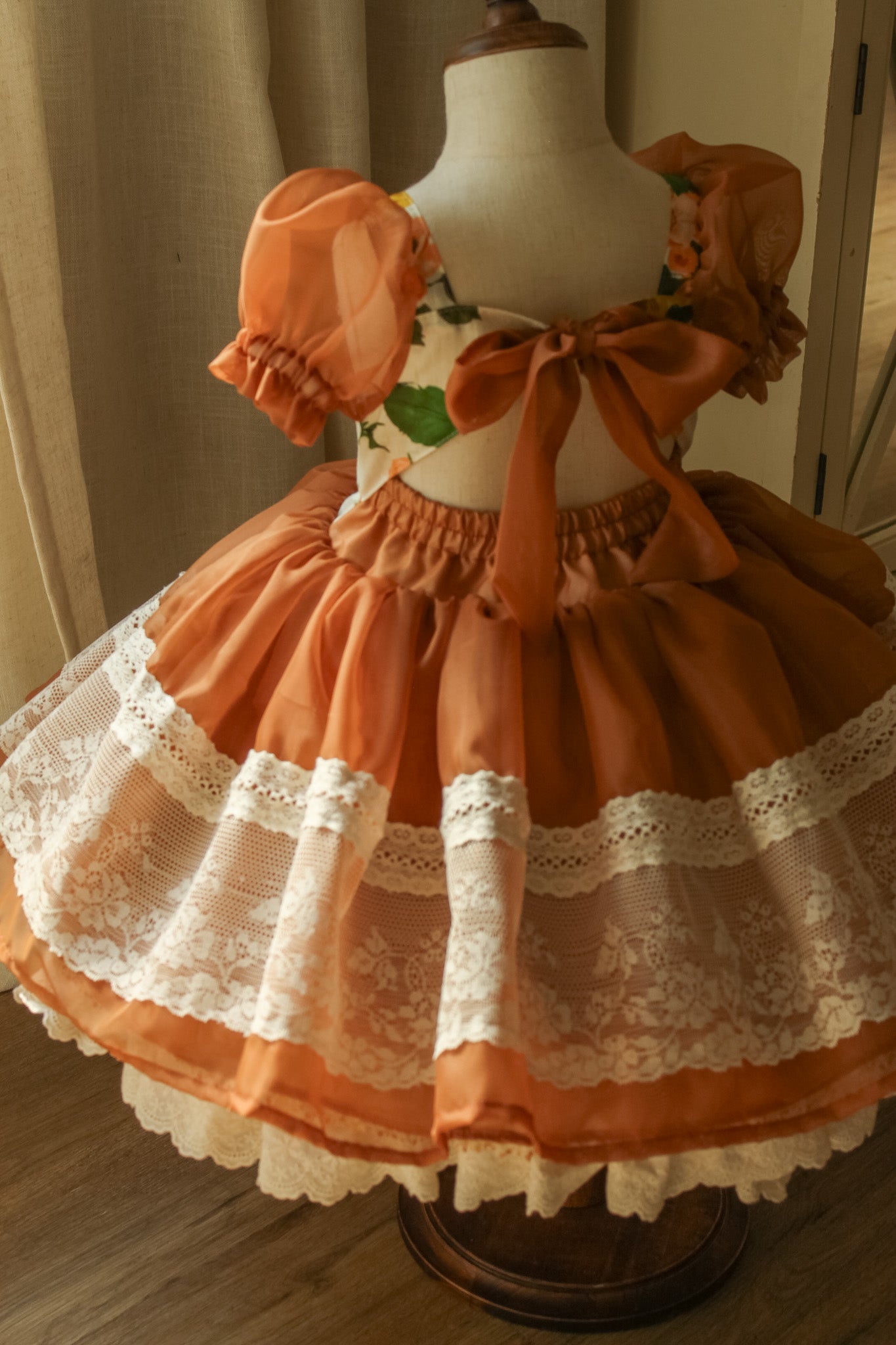*Please note that the actual solid color is a brown with orange undertone, dress is NOT Orange!