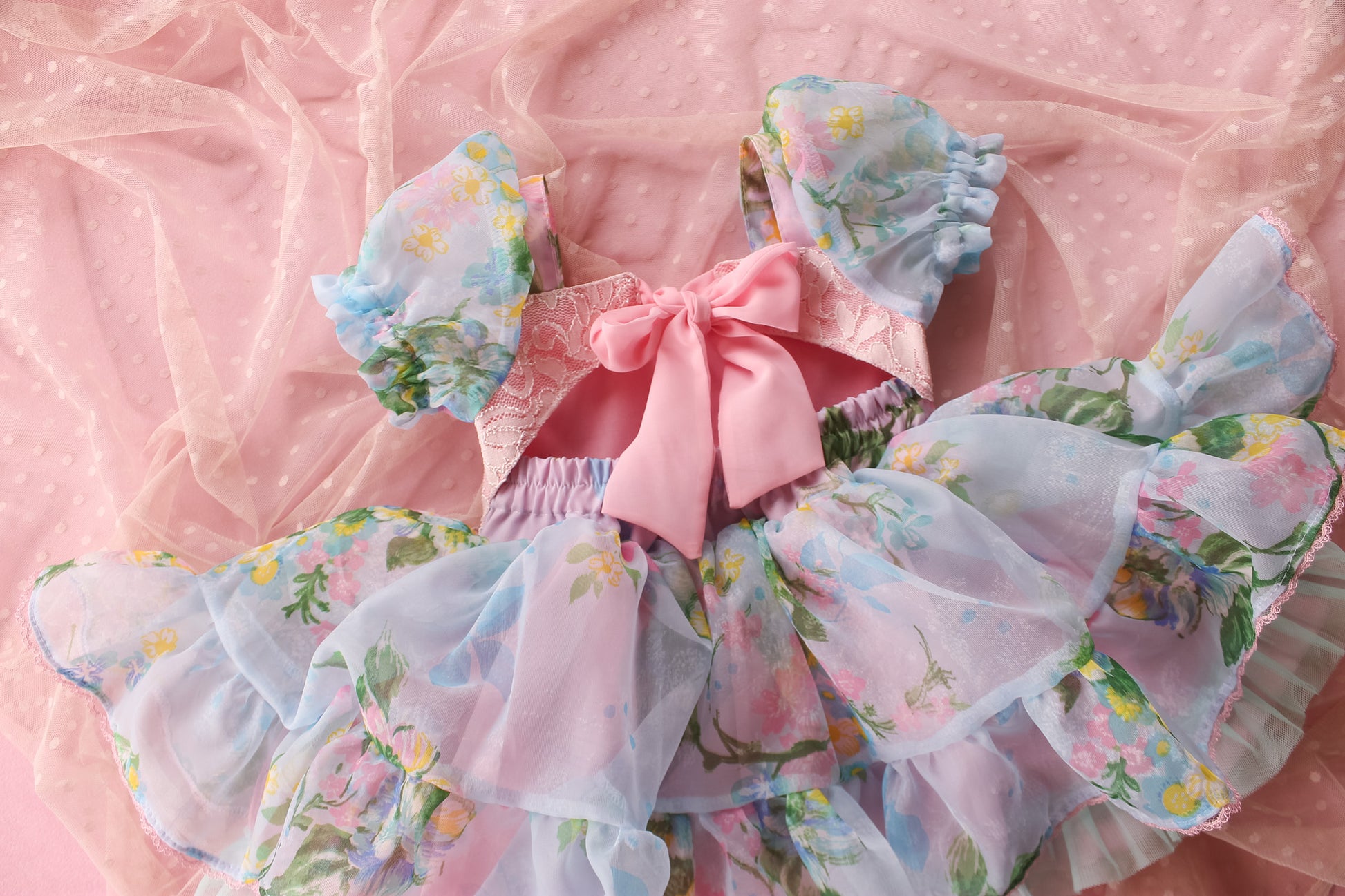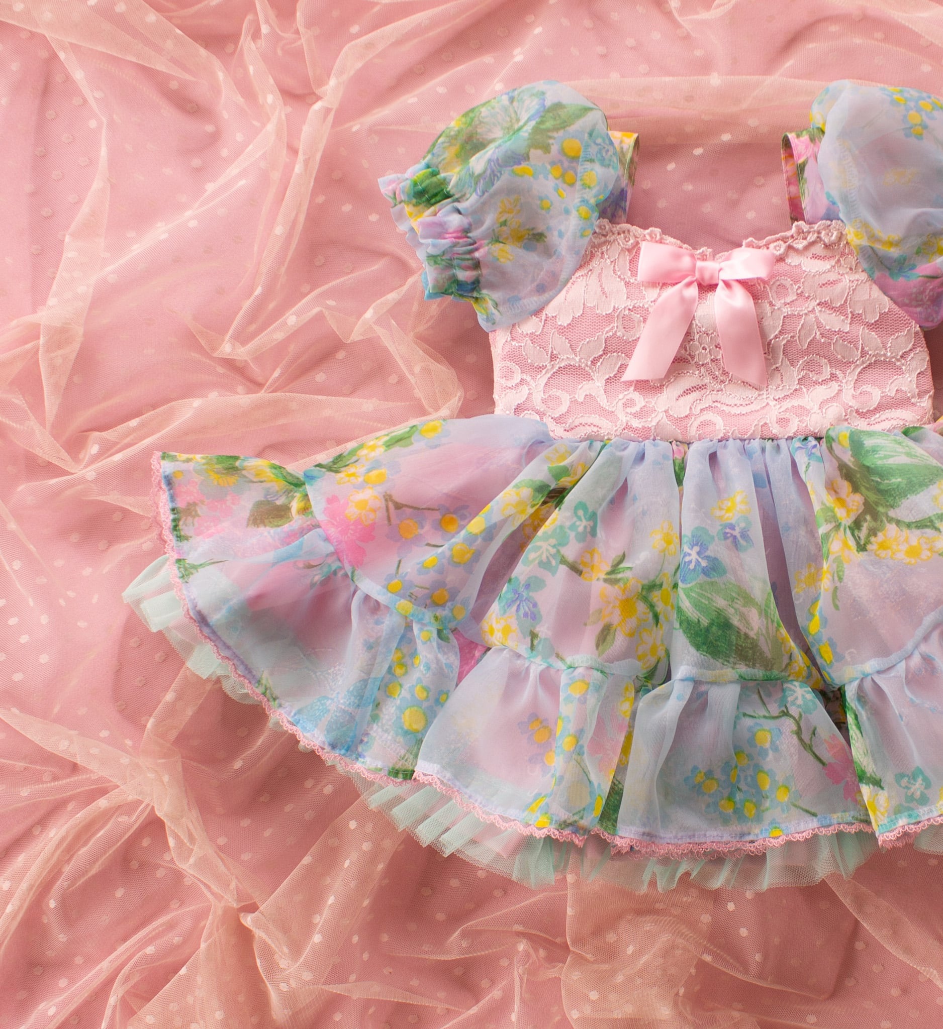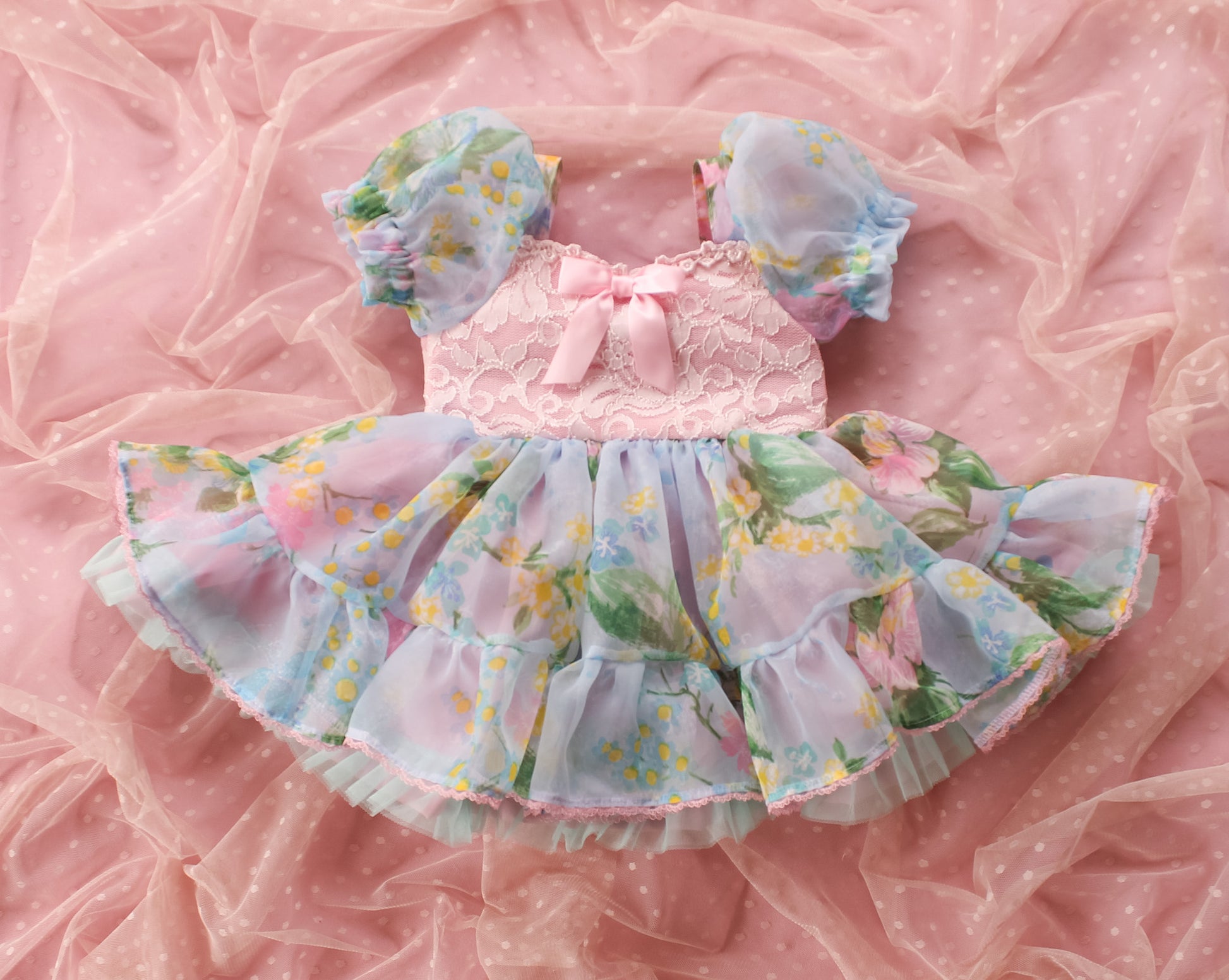 Indulge in the romantic beauty of Sugar and Sunshine, Our vintage materials are expertly crafted to showcase a striking floral print. The lovely lace bodice and puff sleeves add a touch of whimsy and elegance. Experience the magic of Valentines in this one-of-a-kind statement piece, unique dress for your one-of-a-kind girl!